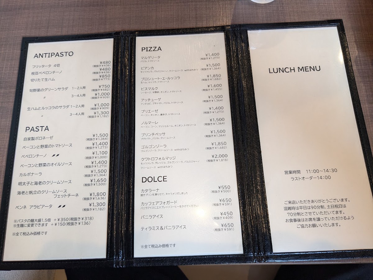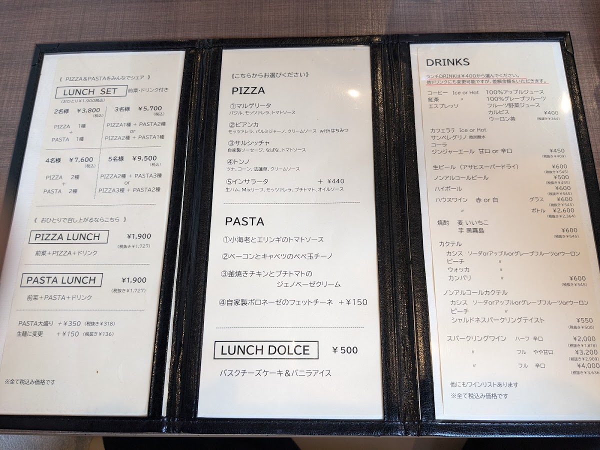 If you're visiting for lunch, the ランチのフンギビザ is a delightful pizza topped with earthy mushrooms, while the ボンゴレ ビアンコ pasta offers a satisfying, light option with clams in a white wine sauce. The イカ墨パスタお歯黒 stands out for its rich and bold squid ink flavor, while the エビ カニのクリームパスタ delivers a creamy indulgence with shrimp and crab. For those seeking something a bit more adventurous, the 地鶏の高速焼き offers a perfectly grilled, juicy chicken that pairs beautifully with the rest of the menu.